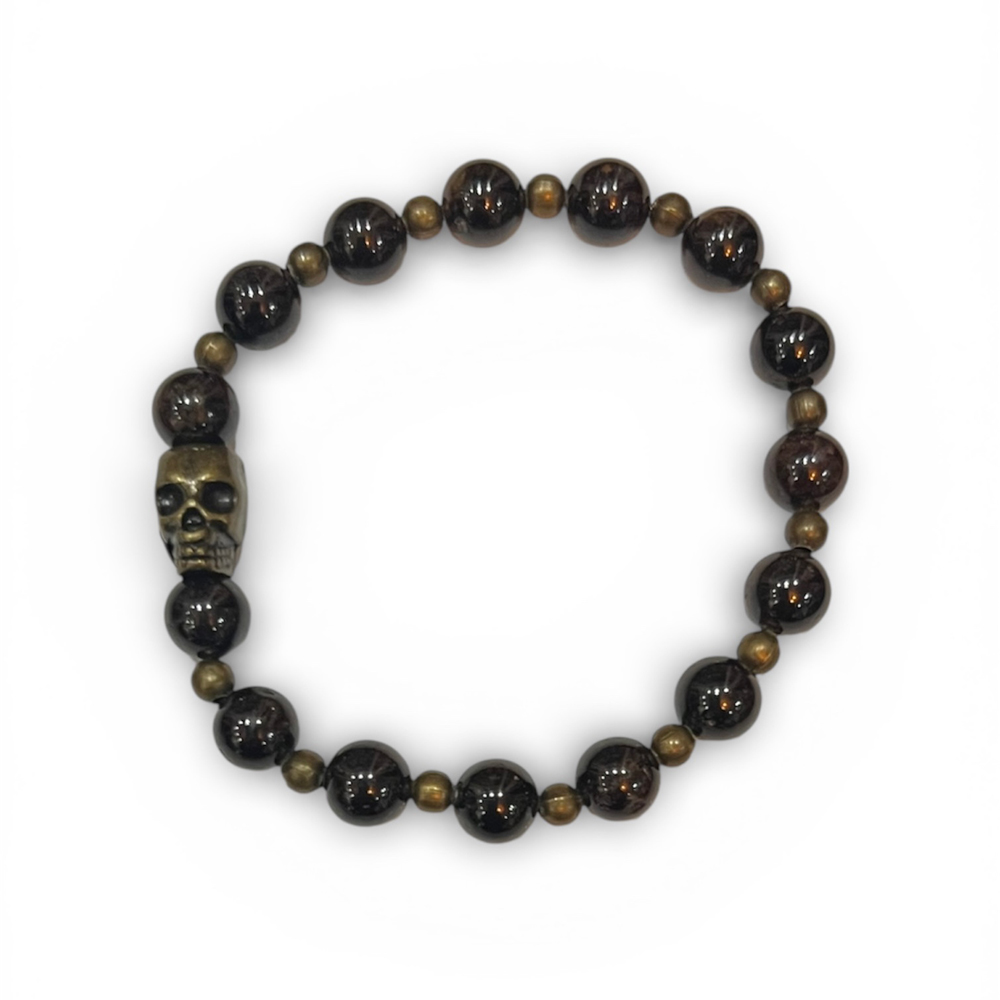Le bracelet Janeiro est en pierres semi-précieuses rondes. Plus précisément en Grenat. On aime cette couleur dense marron foncé. Ses pierres ont un diamètre de 8 mm. Sa longueur est d’environ 19 cm.