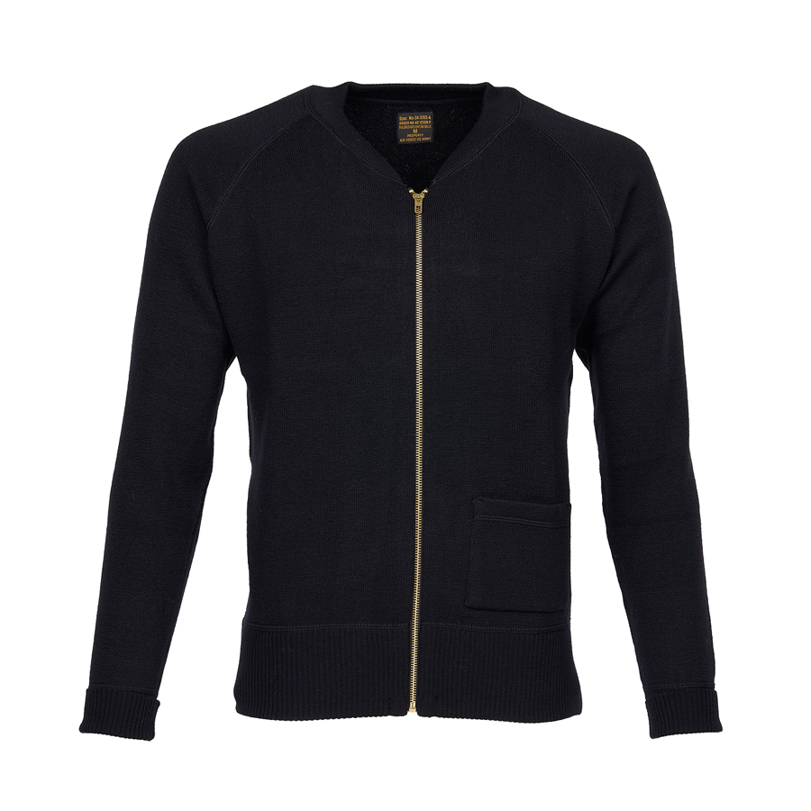 Le cardigan C2 noir a été la première initiative de l’US Air Force visant à développer un système de changement de vêtements pour les pilotes.