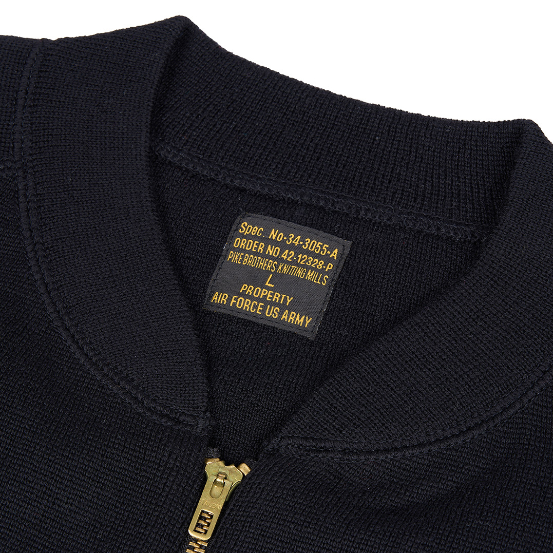 Il s’agissait d’une couche isolante supplémentaire pour le blouson en cuir d’aviateur A2. Pour une liberté de mouvement optimale, le cardigan C2 noir de Pike Brothers présente une coupe ajustée et des manches raglantes.