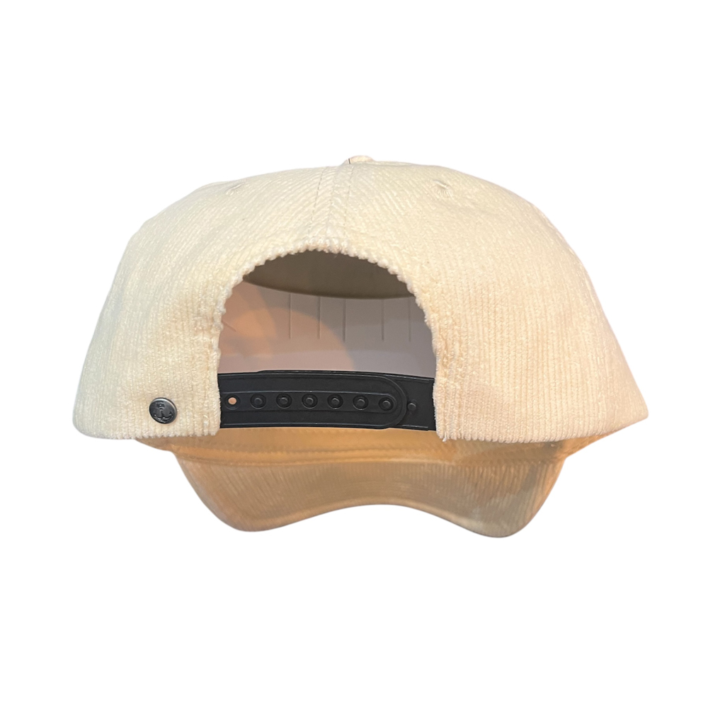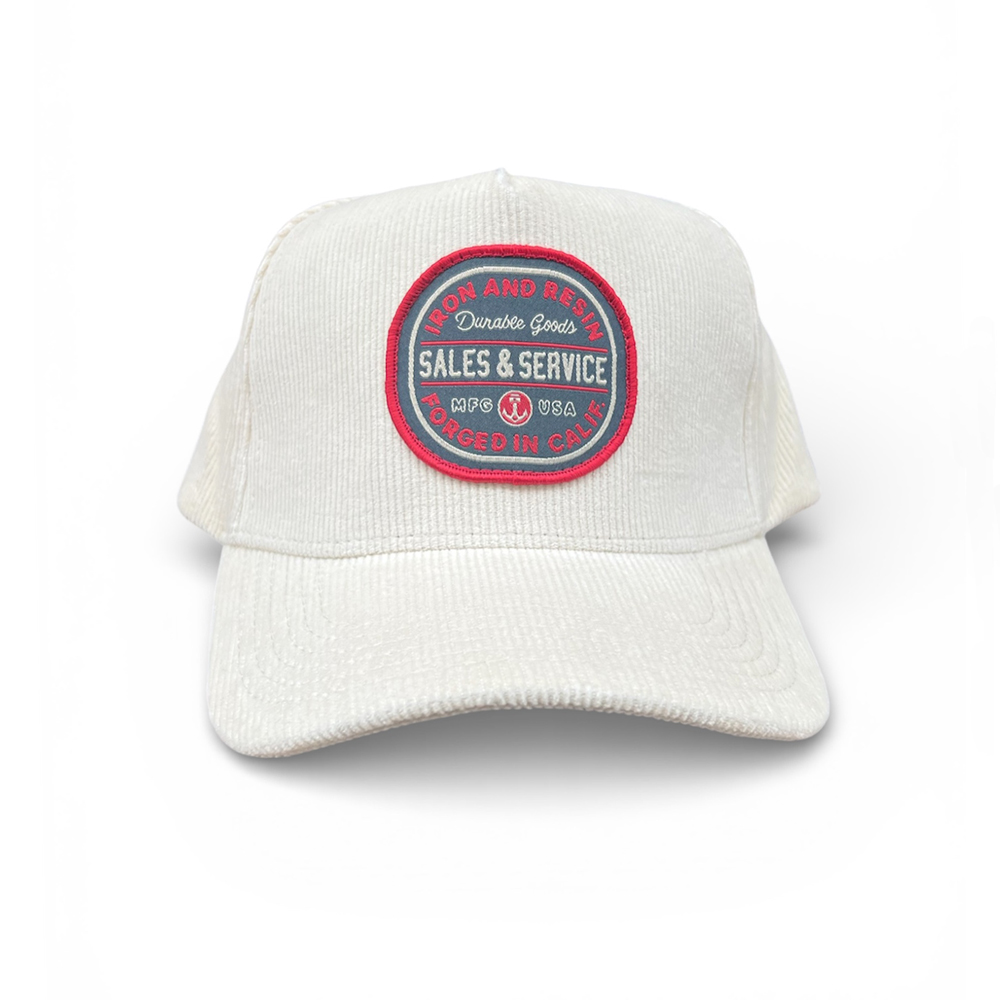 La nouvelle casquette Sales and Service de Iron and Resin est entièrement composée de velours à fines côtes de couleur écrue. Sa rigidité en fait un produit qui a de la tenue. Elle est de très bonne qualité.