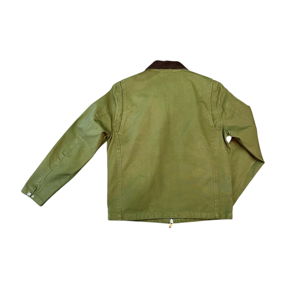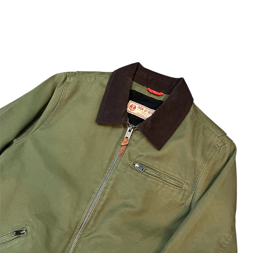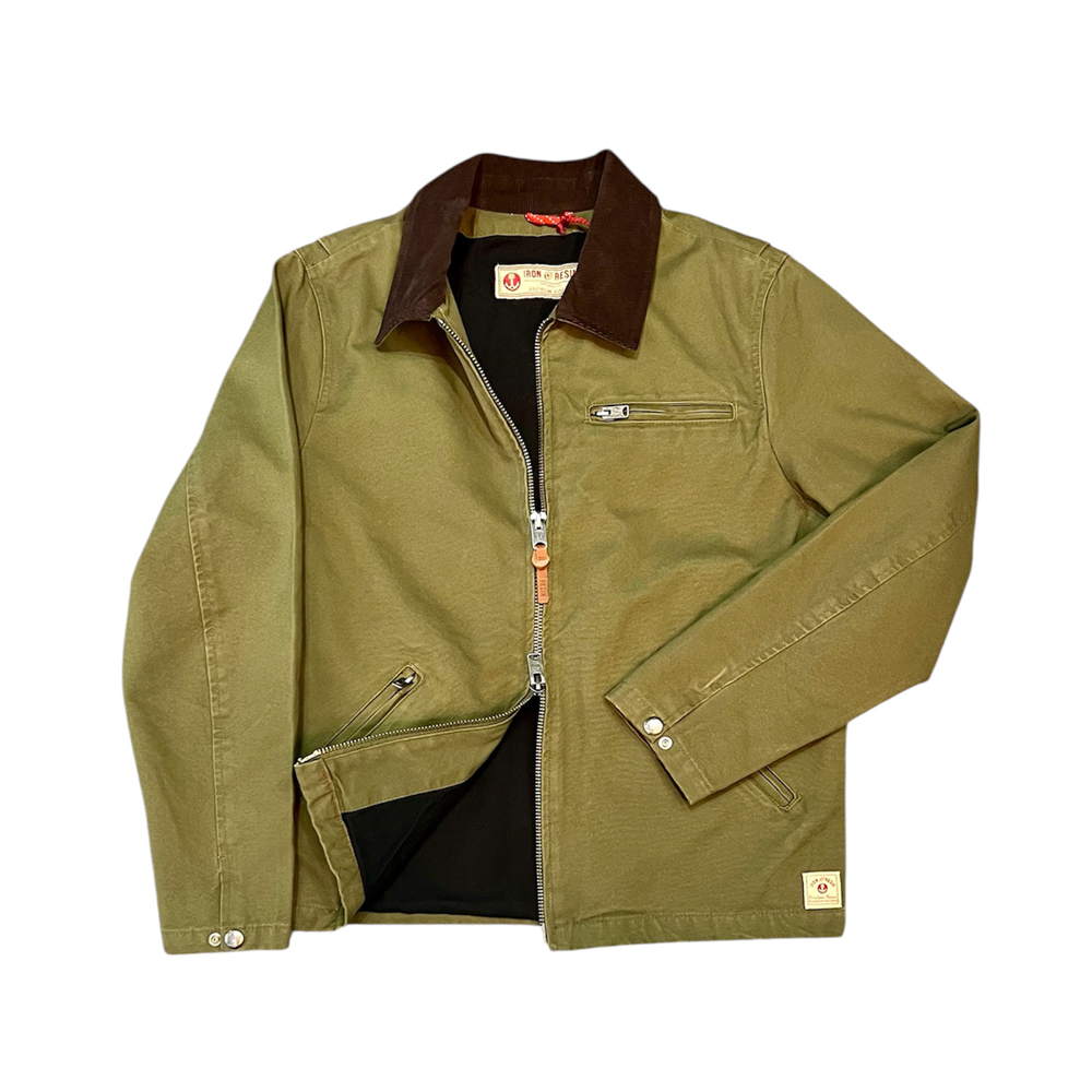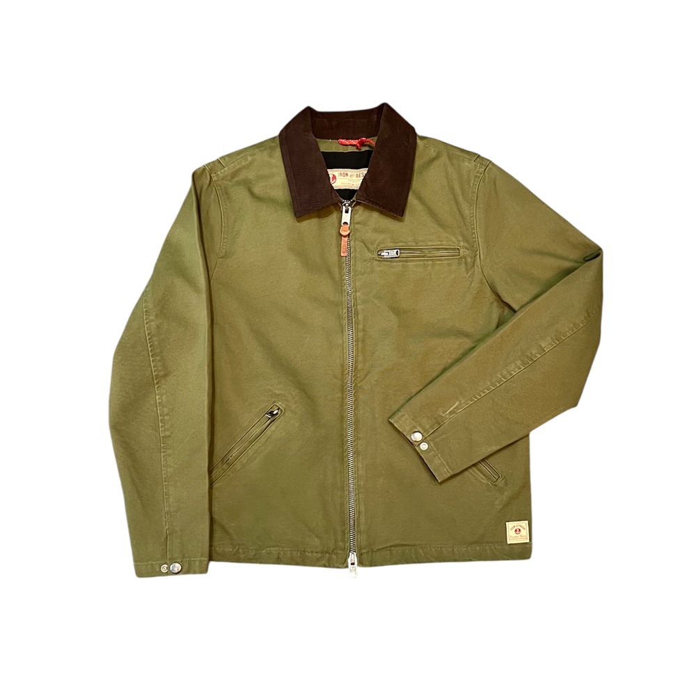Retrouvez l’iconique Sanjon Jacket kaki de Iron and Resin. Conçue dans un coton Turpin Canvas épais, cette veste pour homme est un grand classique du vestiaire de la marque. Entièrement doublée de coton, elle possède de nombreuses poches.