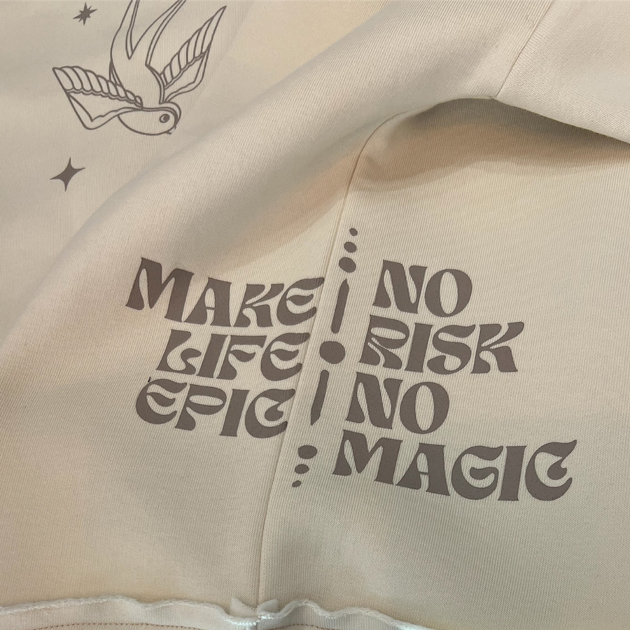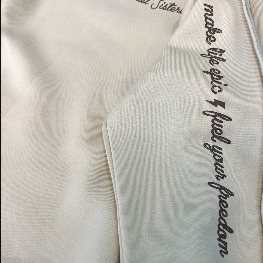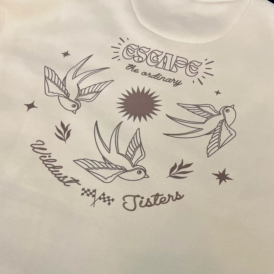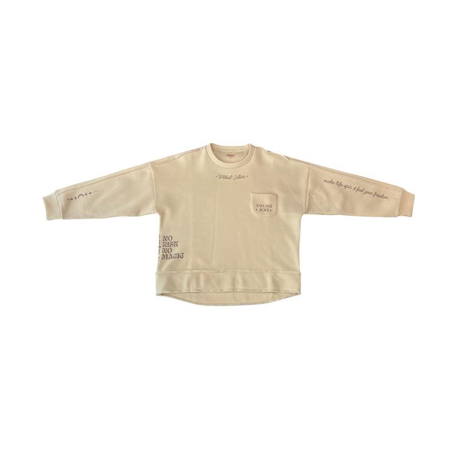 Le sweatshirt Escape de Wildust Sisters est extra large. Sa coupe oversize lui donne un côté cocooning, idéal pour les moments cools. Il possède une poche au niveau du coeur. Il est imprimé de slogans chers à la marque comme