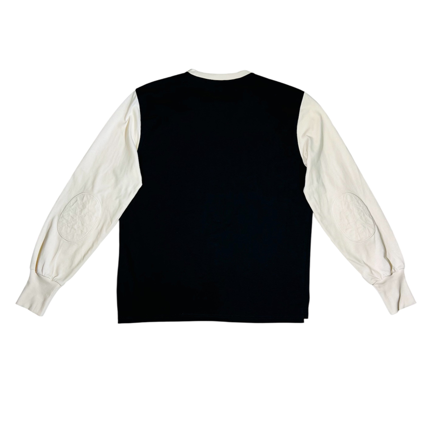 T-shirt noir et blanc pour homme, à manches longues, imprimé poitrine.