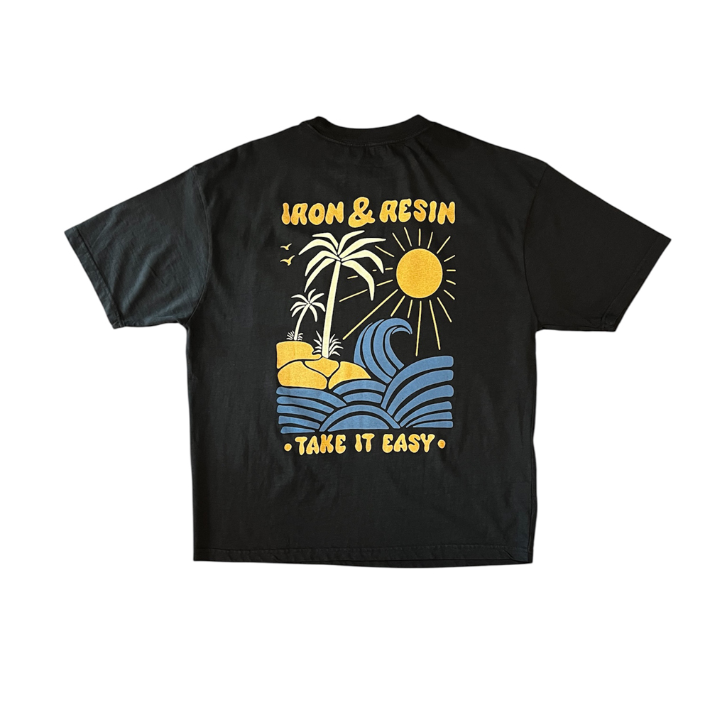 Le t-shirt Take it Easy noir de Iron and Resin donne envie de surfer. Réalisé dans un coton 240 gr., il est très confortable. Sa coupe ample et droite est tendance. Il possède une poche au niveau du coeur qui est imprimé du logo de la marque.
