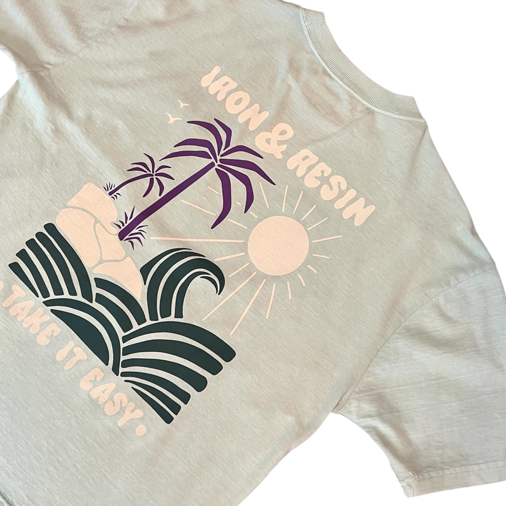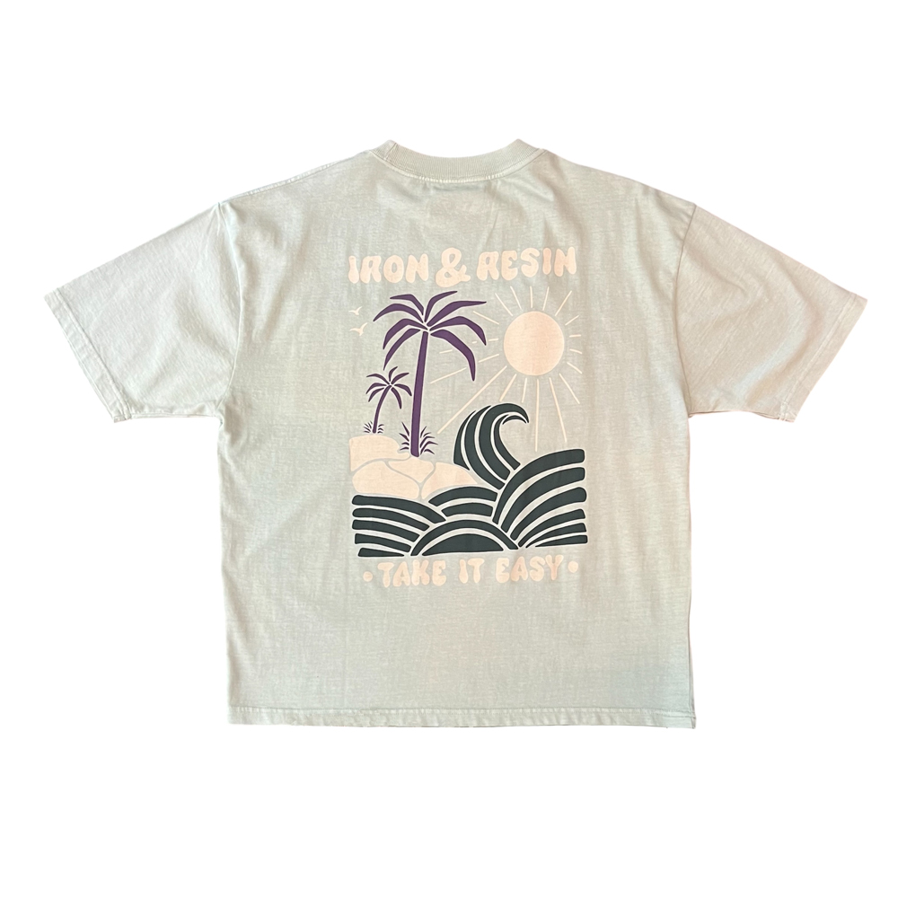 Le t-shirt Take it Easy vert de Iron and Resin nous plonge dans l’été. Réalisé dans un coton 240 gr., il est très confortable. Sa coupe ample et droite est tendance. Il possède une poche au niveau du coeur qui est imprimé du logo de la marque.