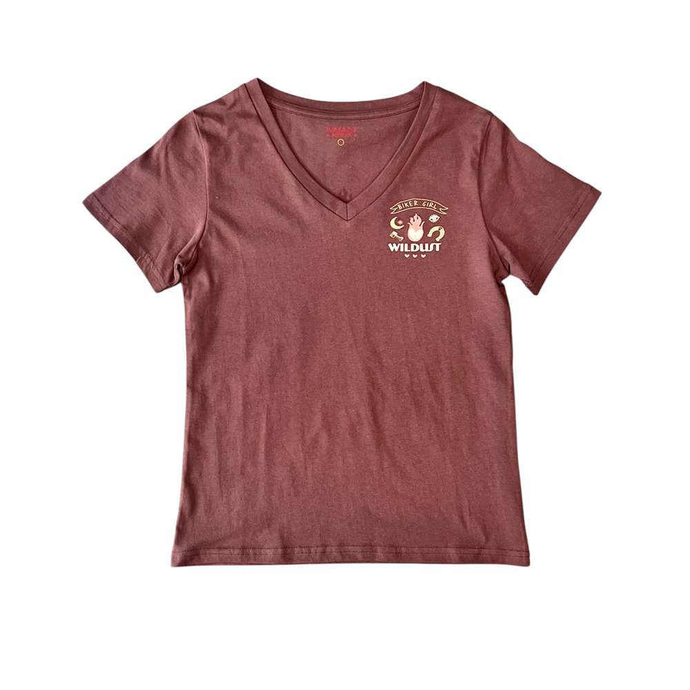 Ce t-shirt pour femme a des manches courtes. Il est de couleur bordeaux. Son col en V est très flateur pour la silhouette.