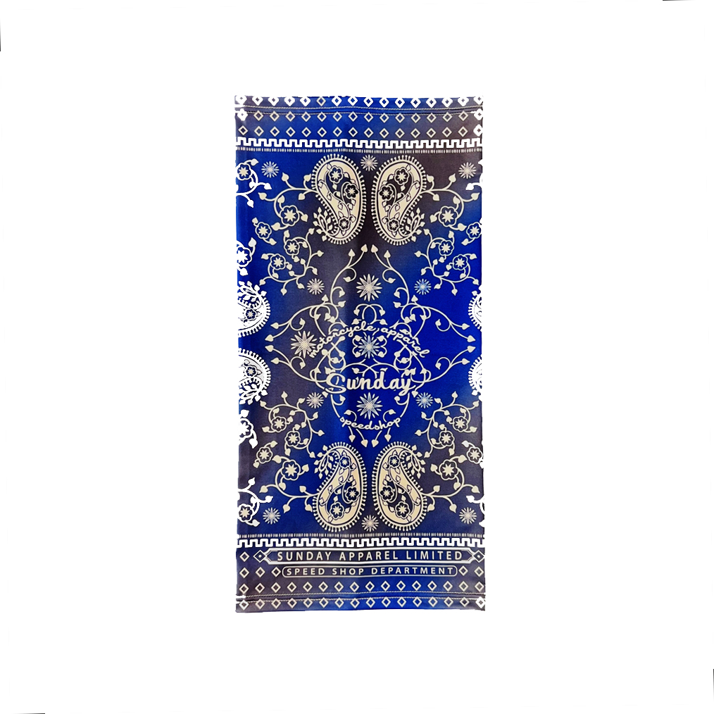 Le tour de cou Héritage bleu de Sunday Speedshop reprend le design des bandanas.